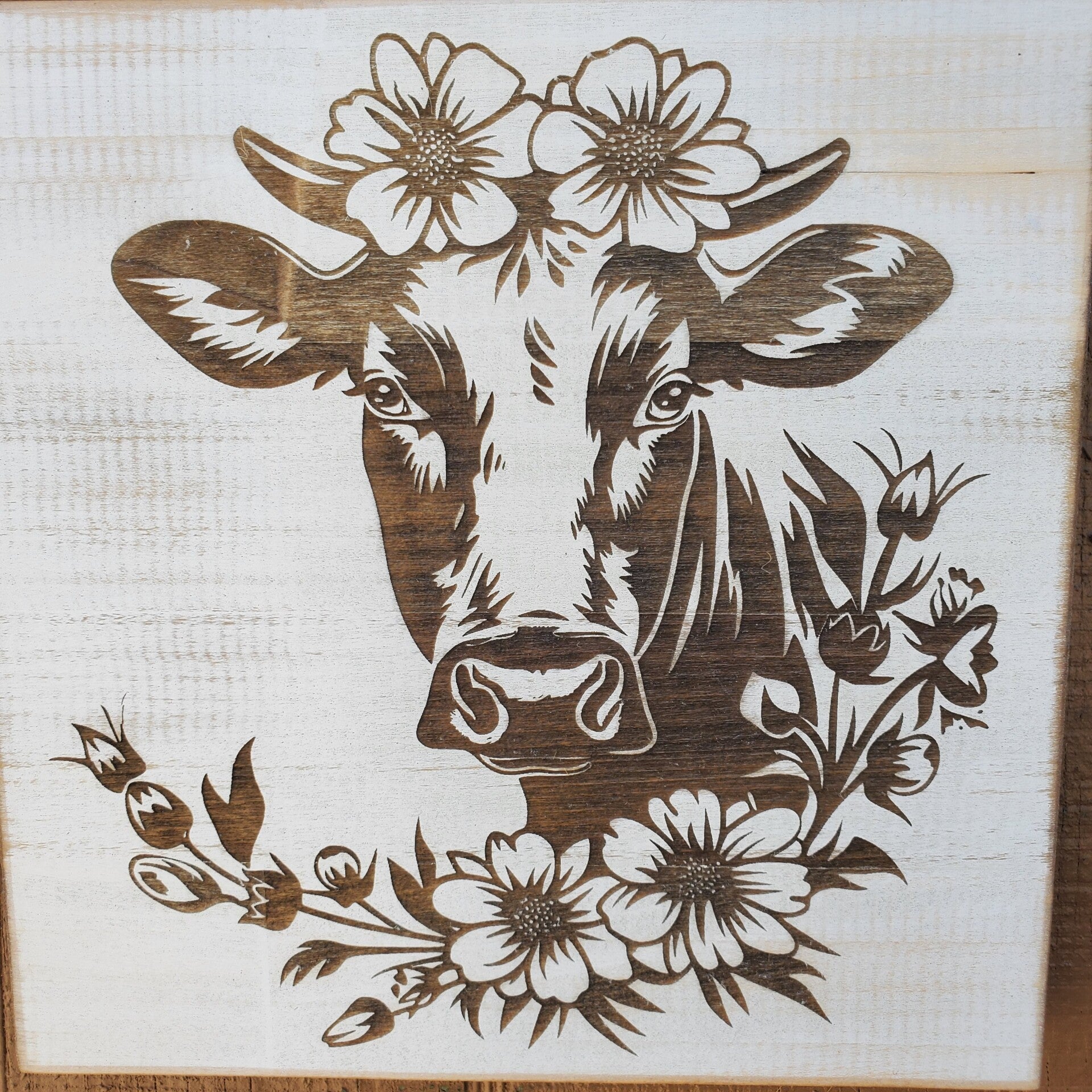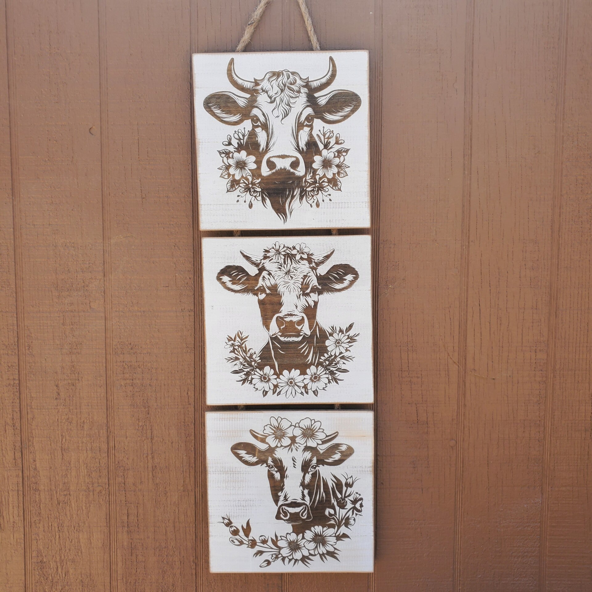 Floral Cows wooden hanging