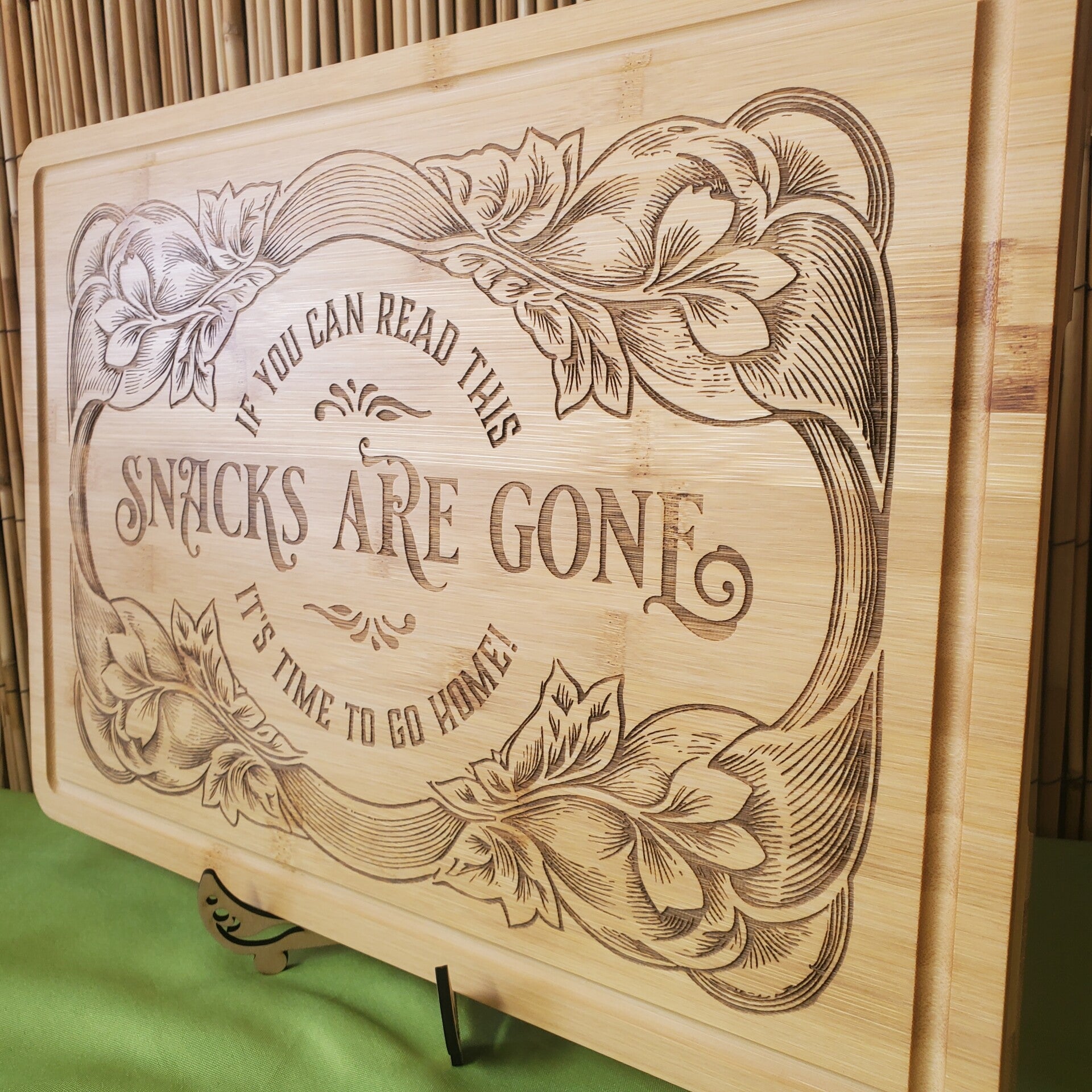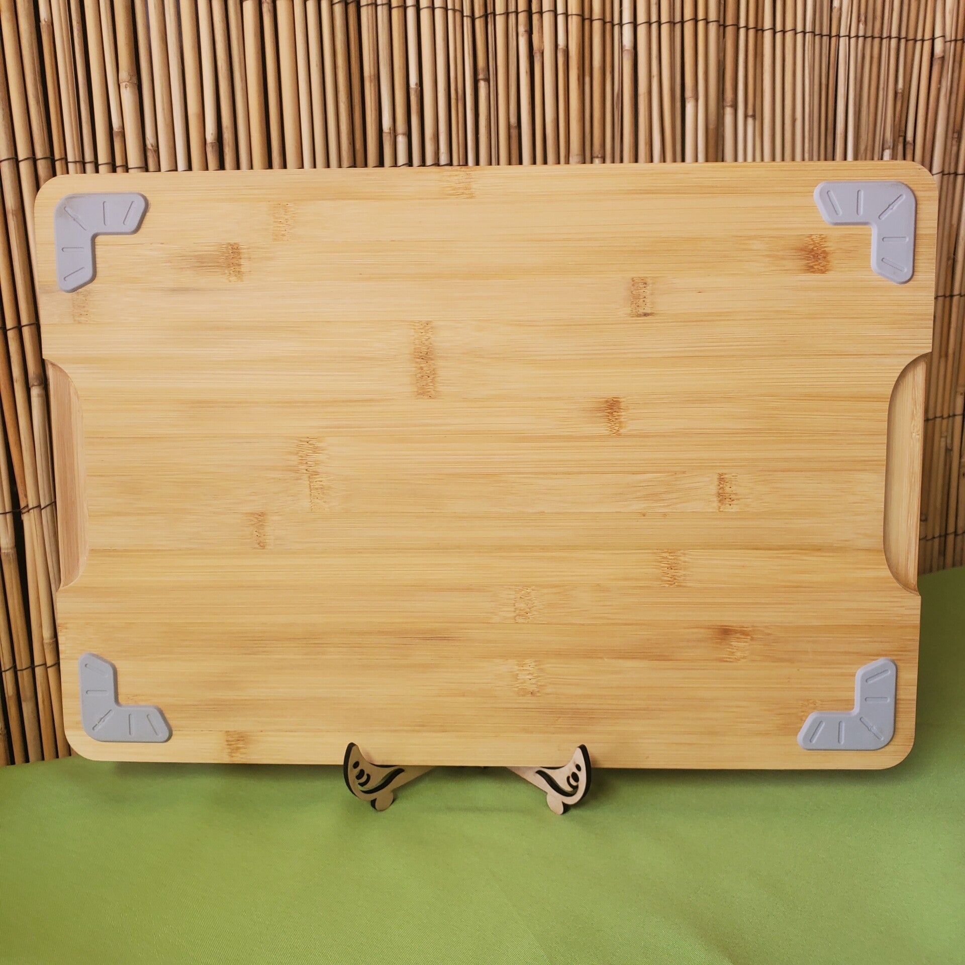 12"×17.5" Bamboo Serving Board with carved handles and rubber feet
